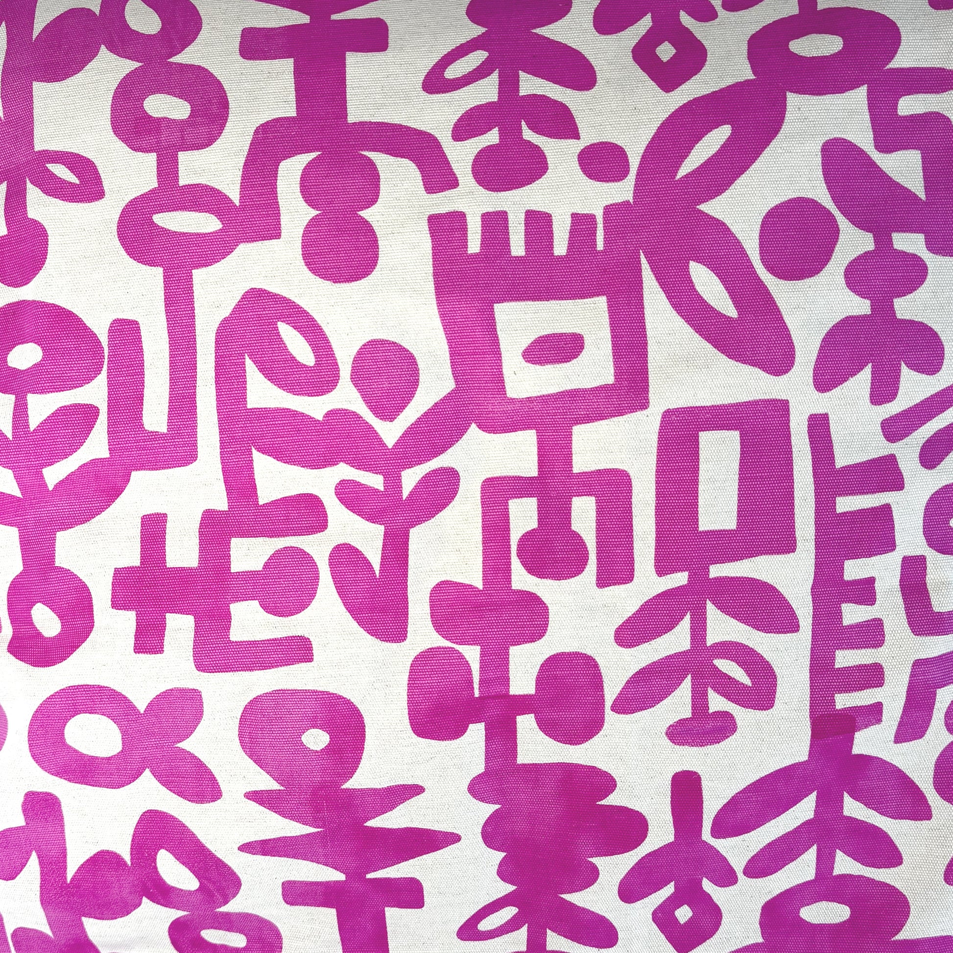 Patterns are always on my mind. My homework diary was jammed with ballpoint doodles, I draw designs in beach sand with my finger and I see patterns wherever I go. Test Pattern began as a playful print for a batik workshop in Bali which evolved into an abstract design of fauna and flora shapes that frolic across the fabric.