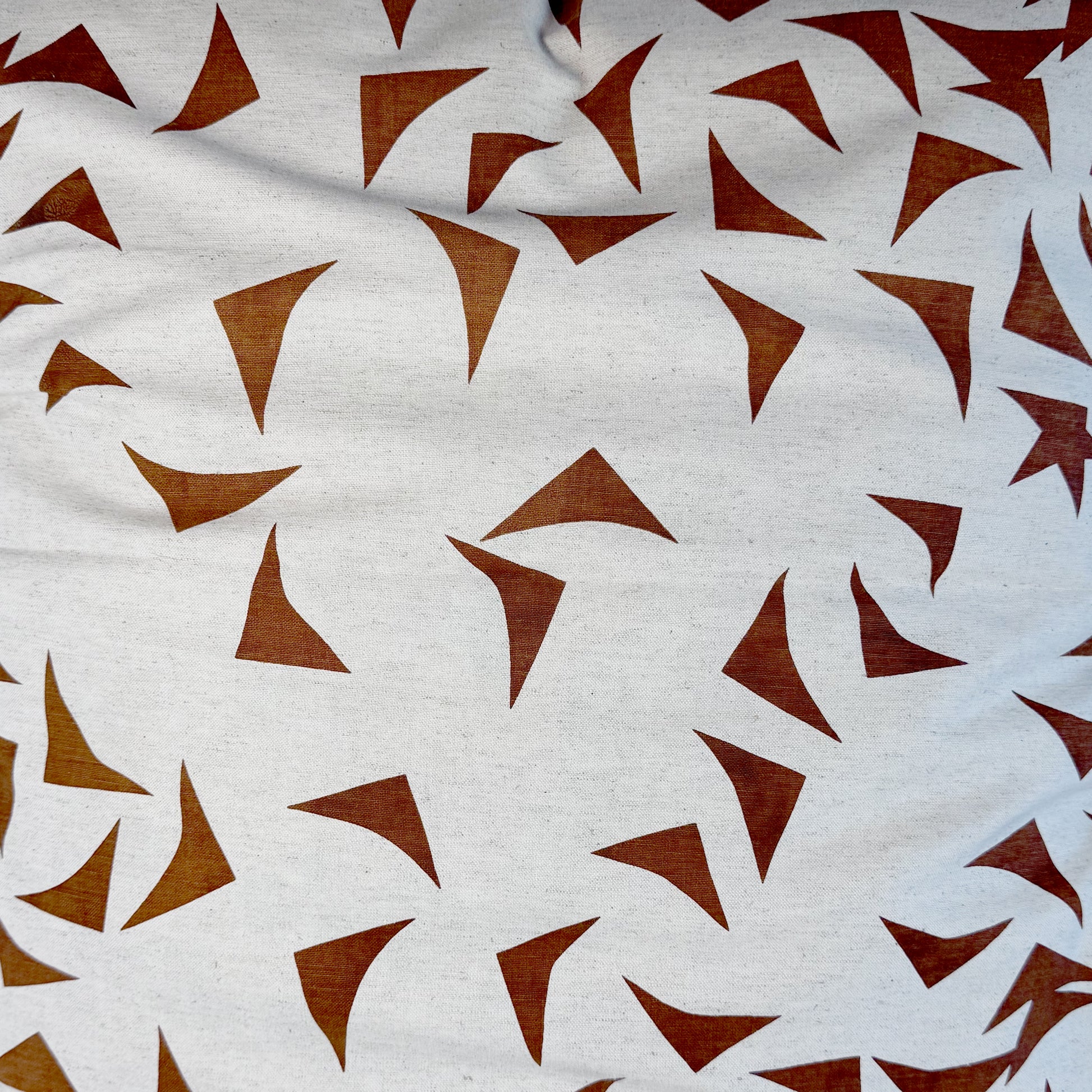 I use a rotary cutter to snip off the curved corners of the purses I make. One day, before sweeping the triangular offcuts into the bin, I noticed the pattern they made as they fell onto the table… like a flock of tiny fabric birds about to take flight. Cutting Corners is about seeing the whimsy in the waste.
